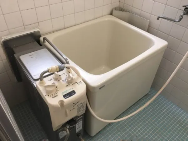 浴槽は木製で足を折りたたんで(体育座り?)やっと入れる大きさの浴槽だったようです。
