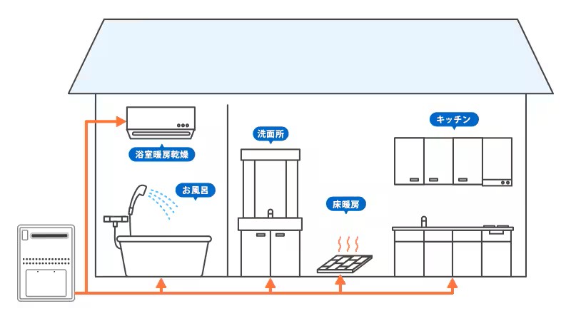 RF式給湯器の普及に伴い、1つの給湯器で浴室・洗面・台所すべてをまかなうセントラル給湯が主流になっていきました。